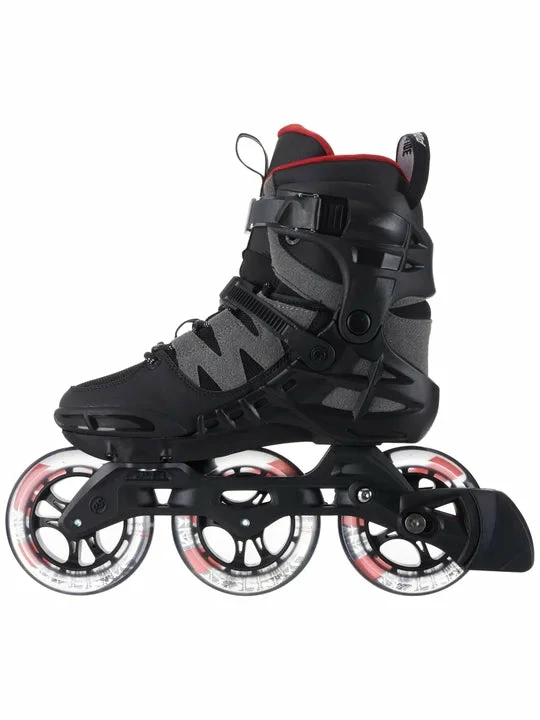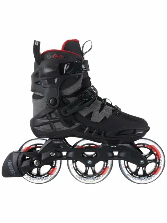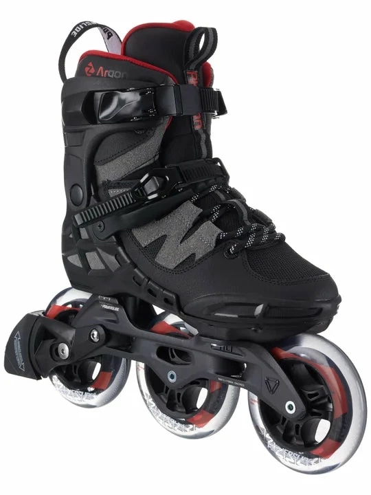 Powerslide Argon Ash 110 Mens Inline Skates. Updated uppers hug the foot more for added support and they look and feel better. Trinity X mounting allows more adjustability both laterally and front to back. Adjustments can help to turn better, add power at push-off, or correct ankle roll. Fast and smooth 110mm wheels used with short frames (9.6″ – removable and adjustable) combines speed and agility. Short frames keep the skater in an aggressive forward-leaning stance that endurance skaters will enjoy. The boots are compatible with any trinity mount frame from Powerslide should you want to change frames and/or wheel configurations later on. Recall fit liners (not removable) start out snug, and break-in naturally to maintain a performance fit.