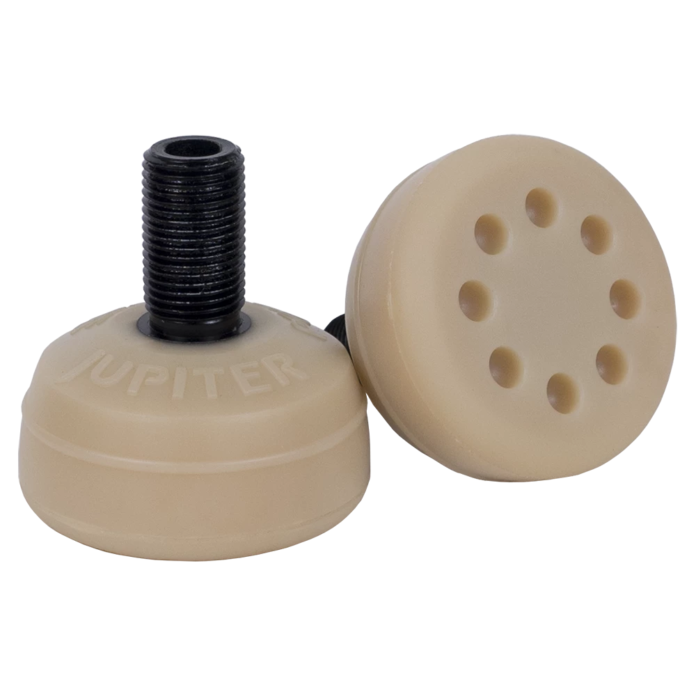 Jupiter toe stops are non-marking and are recommended for all surfaces, including wood, sport tile, concrete/cement and outdoor skating surfaces. The Jupiter toe stops are sold in pairs.