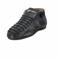 The 595 is a classic, complete leather roller skate boot. The boot features full-grain leather uppers and a comfortable Chinook leather interior. Inside has heat moldable counters in the arches and outside quarter of the right boot. The ankle tie keeps your heel in place. Comes in Alpha (medium) width which runs wider than most standard boots.