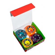 The new fun Estro Jen’s 101A Bowl Bombers! RollerBones park wheels you love now by X Michelle Steilen wheels for the skatepark come in 4 colors per box; 1 orange, 1 yellow, 1 blue, and 1 purple. You will need 2 packages to complete a set for roller skates.