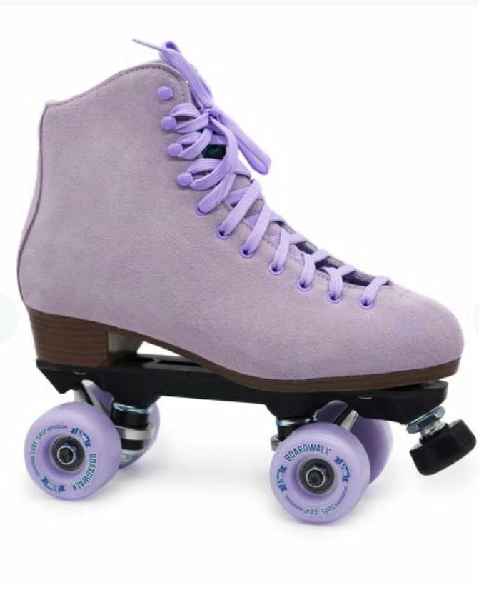 The Boardwalk is a quality recreational level skate complete with outdoor wheels in a beautiful suede lavender.