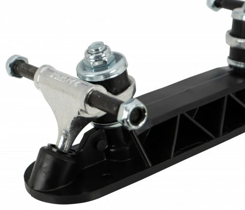 This plate has a Lifetime Guarantee and can be used for recreation, speed or jam skating. Made with High Tech DuPont Zytel 801 Super Tuff nylon. Super cool Patented V Bracing design for optimum strength. These plates are 40% lighter than conventional aluminum plates. They have Double action trucks and 8mm axles.