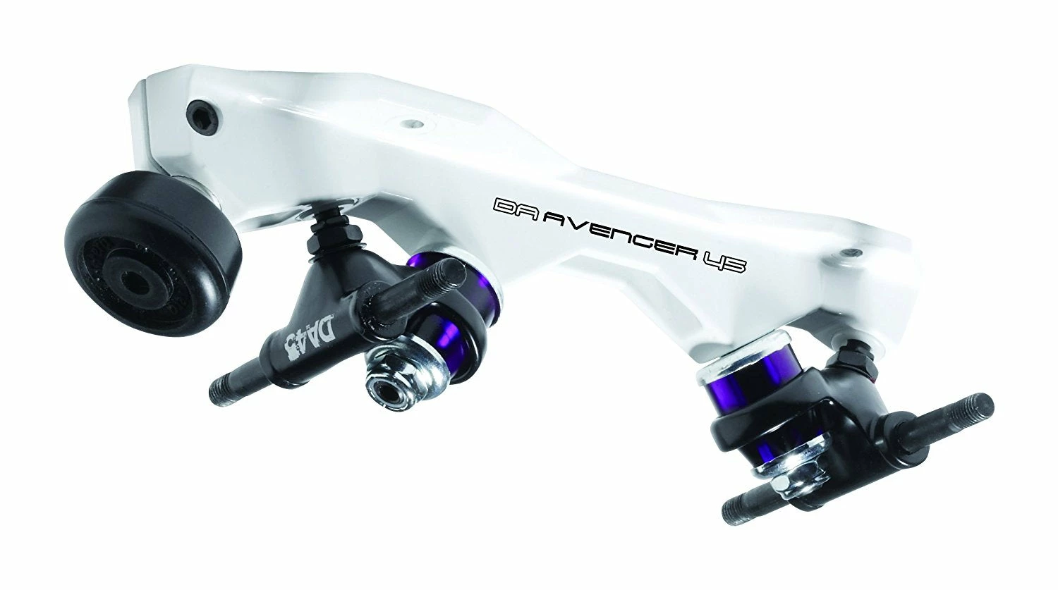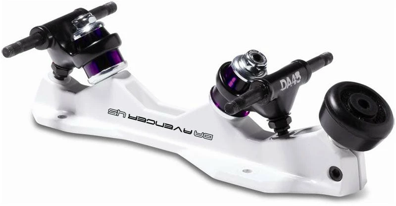 The Avenger plate concept was derived from the 45 degree Magnum and 45 degree Invader skate plates of the late 70’s early 80’s. Over the last few years a lot of emphasis has been placed on strong light weight products for speed and derby. In the 80’s we developed the single action Magnum speed plate for this purpose, produced in both aluminum and magnesium, this plate was very light and very strong. Recently we have seen a greater awareness for this style plate; we saw it fitting to redesign it using modern technology and what we came up with was the Avenger. Using a computer aided design program every inch of this plate was designed for a purpose; specific wall thickness, heights, lengths, angles, and material were all chosen for their unique properties. The avenger will be produced in both aluminum and magnesium and both will come standard with the new DA45 truck. The Avenger aluminum will be painted black and the magnesium plate will be painted white. All the superior track hugging agility you have come to expect from the DA45 action in a new lightweight skate.