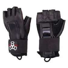 Padded leather gloves with wristguard splints – they are extremely protective, especially for fingers; a must for skaters in professions that must minimize hand injuries. Double-stitched, full-grain leather lined with shock-absorbing EVA foam padding, removable top and palm impact-resistant ABS splints.